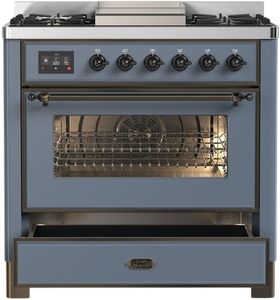 The 36" Majestic freestanding range brings the ultimate cooking experience to your kitchen. The large European Convection oven gives you the power to experiment with your dishes and get even cooking, while the full-width dish warming drawer gives the option to use residual heat of the oven to keep cooked food warm or warm your dishes before serving. The cooktop features semi-sealed burners with various BTUs to cook whatever you want, however you want.Read More