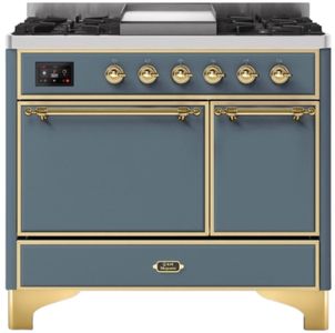 The Majestic 40" dual fuel range combines the classic Italian style and cutting-edge technology. This range features 6 gas burner and griddle, equipped with a total black brass flame spreader with non-stick nanotechnological coating, dual 2.3 + 1.52 cu. ft. total oven capacity, 4.3" full touch oven control display and easy clean enamel oven cavity.Read More