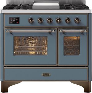 The Majestic 40" dual fuel range combines the classic Italian style and cutting-edge technology. This range features 6 gas burner and griddle, equipped with a total black brass flame spreader with non-stick nanotechnological coating, dual 2.3 + 1.52 cu. ft. total oven capacity, 4.3" full touch oven control display and easy clean enamel oven cavity.Read More