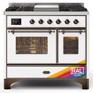 The Majestic 40" dual fuel range combines the classic Italian style and cutting-edge technology. This range features 6 gas burner and griddle, equipped with a total black brass flame spreader with non-stick nanotechnological coating, dual 2.3 + 1.52 cu. ft. total oven capacity, 4.3" full touch oven control display and easy clean enamel oven cavity.Read More