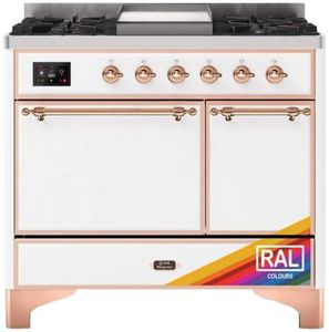 The Majestic 40" dual fuel range combines the classic Italian style and cutting-edge technology. This range features 6 gas burner and griddle, equipped with a total black brass flame spreader with non-stick nanotechnological coating, dual 2.3 + 1.52 cu. ft. total oven capacity, 4.3" full touch oven control display and easy clean enamel oven cavity.Read More