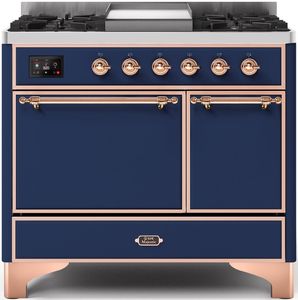The 40" Majestic freestanding range brings the ultimate cooking experience to your kitchen. The large European Convection oven gives you the power to experiment with your dishes and get even cooking, while the full-width dishwarming drawer gives the option to use residual heat of the oven to keep cooked food warm or warm your dishes before serving. The cooktop features semi-sealed burners with various BTUs to cook whatever you want, however you want.Read More
