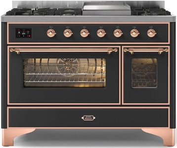 The 48" Majestic freestanding range brings the ultimate cooking experience to your kitchen. The large European Convection oven gives you the power to experiment with your dishes and get even cooking, while the full-width warming drawer gives the option to use residual heat of the oven to keep cooked food warm or warm your dishes before serving. The cooktop features semi-sealed burners with various BTUs to cook whatever you want, however you want.Read More